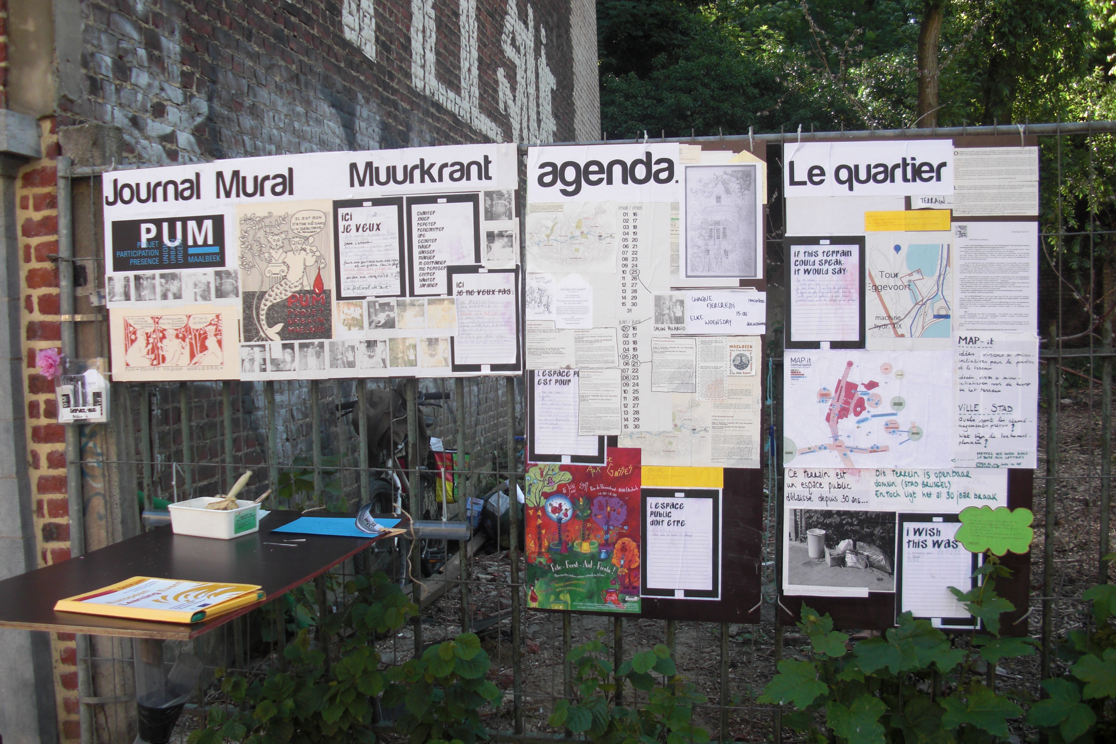 In de Europawijk, aan de rand van het Leopoldpark en in de schaduw van het Europees Parlement, het Museum voor Natuurwetenschappen en het Eastman-gebouw, ligt een dicht begroeide braakgrond ter grootte van een klein voetbalveld. Binnen de glinsterende Europawijk een anomalie, ze vertoont een nijpend gebrek aan groen en recreatieruimte. De braakgrond situeert zich bovenop de oude rivierbedding van de Maalbeek en valt onder de bevoegdheid van verschillende overheden. In de winter van 2010-11 nam een losvaste groep van omwonenden, ambtenaren, socio-culturele organisaties, kunstenaars, wetenschappers en jongeren de restgrond collectief in gebruik. Ze kozen het perceel uit via MAP-it, een cartografie-methode aangereikt door het internationaal stedelijk netwerk City Mine(d) dat de buurtactie begeleidde. Ze doopten het perceel 'Friche Eggevoort' en startten in april 2011 onder de naam PUM (Project, Participatie, Urgent, Urbain, Maalbeek) een aantal kleine ingrepen en micro-projecten: de aanleg van een moestuin en een vijver, de aanplanting van braambessen. City Mine(d) plaatste er samen de omwonenden een paviljoen waar regenwater werd opgevangen en gefilterd tot drinkbaar water. De initiatieven zorgden voor verrassende samenwerkingen en gedeelde, lokale expertise over urbanisme, water, biodiversiteit en patrimonium. Het maakte vele participerende burgers en organisaties ook bewust van het ruimteprobleem en van co-creatie als antwoord: de nood aan een meer zorgzame omgang ermee. City Minde(d) installeerde ter gelegenheid van het kunstenfestval Toc Toc Knock (3e editie) van KVS ook een info- en meetingpoint op het terrein. PUM werkt in een brede coalitie met o.m. het Instituut voor Natuurwetenschappen (KBIN) intussen samen aan een BiodiversiteitsParcours. Dit beoogt een gedeelde ruimte in het Leopoldspark met ook internationale instellingen als lokale spelers.